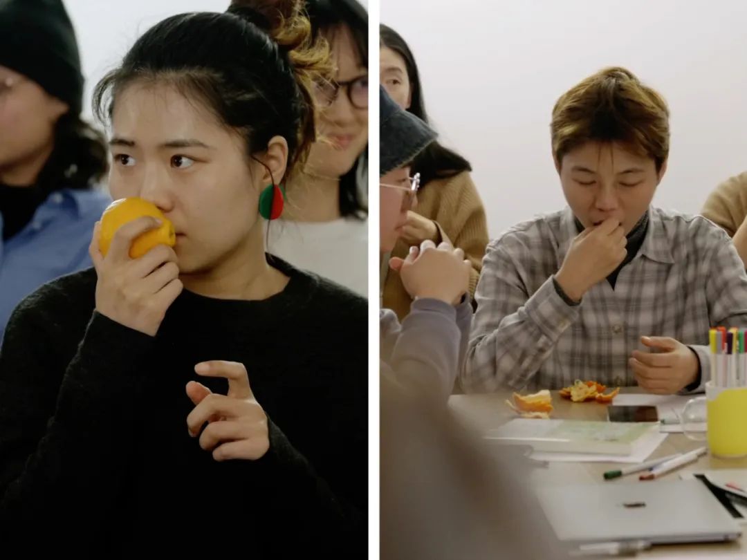 我们也会进企业去做心理健康促进的工作,让大家体验减压,也许是一个非常小的运动,像手指游戏、拉伸操……正念饮食就是放下所有其他事情,我就好好地吃东西。我们可以从吃一个橘子开始,橘子就是你此时此刻交流的对象,观察橘子的大小,闻一闻它的香气,感受它的触感,在剥开它的时候,看一下橘子皮的水分是怎么升腾起来的,一点一点去品尝。
