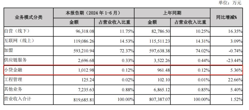 财报显示,2024年上半年,周大生小贷金融收入1012.98万元,同比增长5.36%,远远高于公司整体营收增速。