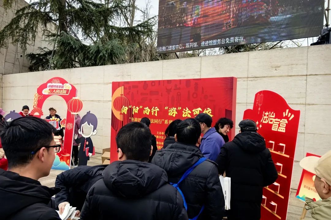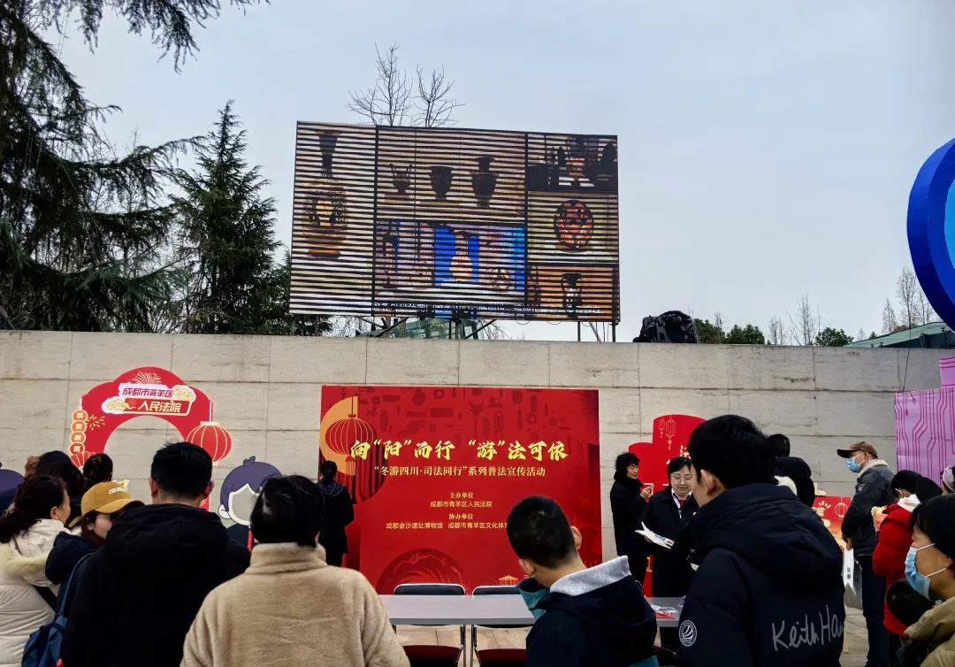 太阳神鸟耀金沙,法护文旅展新篇。为积极响应全省法院系统开展的“冬游四川·司法同行”系列活动,青羊法院依托金沙遗址文化遗产司法保护基地,于元宵佳节当天暨2025成都金沙太阳神鸟节活动期间,携手成都金沙遗址博物馆、青羊区文化体育和旅游局共同举办主题为“向阳而行,游法可依”的普法宣传活动,通过趣味打卡、有奖答题等生动多样的普法方式让游客们在尽情参观游览的同时学习旅游相关法律知识,提升依法维权和文物保护意识。