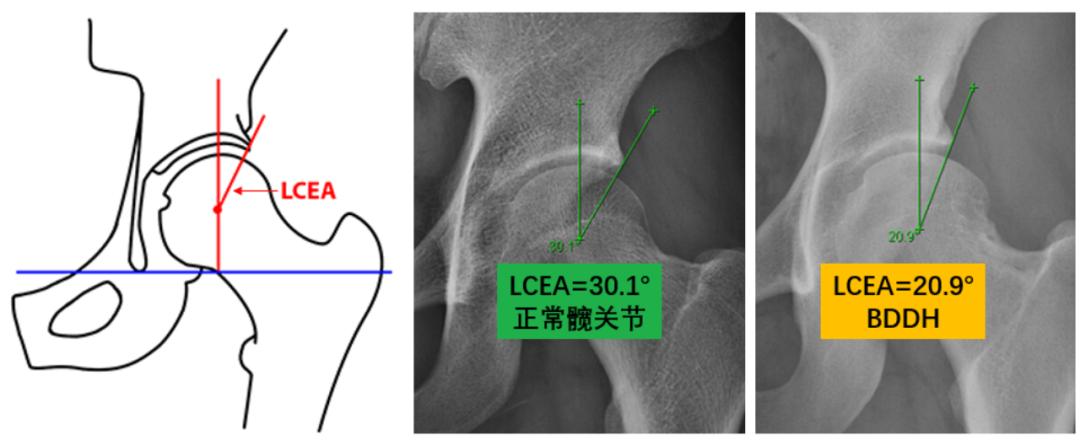 BDDH患者。BDDH的界定目前主要通过在X线平片上测量外侧中心角(LCEA),如LCEA在18°-25°之间,结合患者的临床表现、体格检查、CT及MRI评估结果等,即可诊断为BDDH。