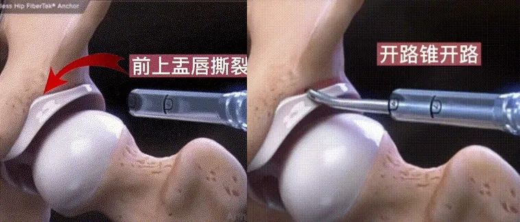 X线透视下建立髋关节镜各手术入路①髋盂唇缝合