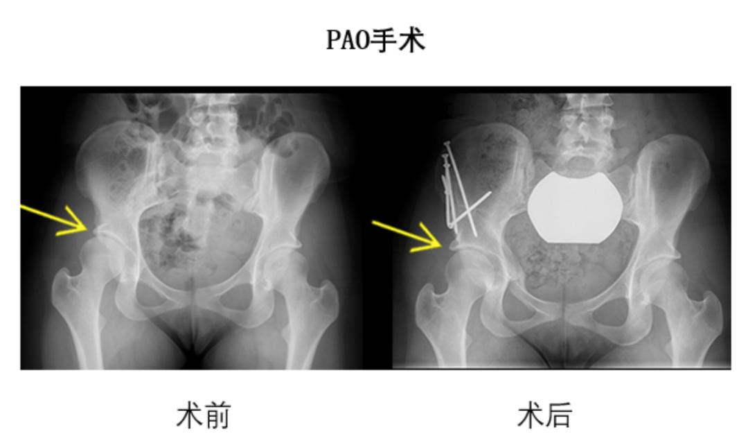 PAO手术的基本原理就是截取髋臼周围骨块并使其移动到能恢复髋臼覆盖的位置后,对其重新固定,从而改善髋臼覆盖情况。