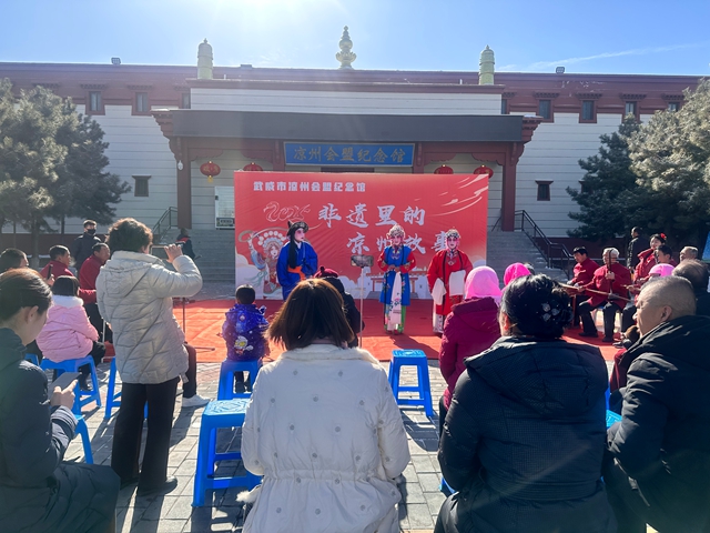 在雷台汉文化博物馆,人们满怀着对新一年的美好期许登高祈福,凉州攻鼓子和凉州贤孝展演,更是让古老的艺术在现代舞台上焕发光彩。激昂的鼓点、质朴的唱腔,带大家穿越时空,领略凉州深厚的文化底蕴。