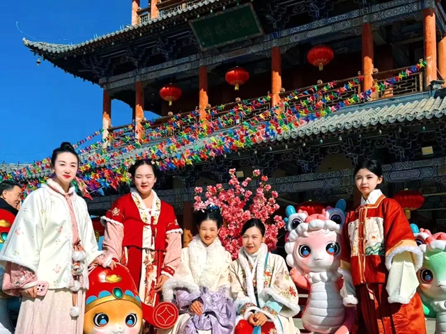 南城门楼上同样精彩不断,身着五凉服饰的志愿者们翩翩起舞,“凉州半台戏”非物质文化遗产代表性传承人以其独特的唱腔和表演风格,展现了生活的酸甜苦辣和人间百态,汉服爱好者身着华贵典雅、精致唯美的汉服,以镜头为笔,以光影为墨,记录着美好时光,云锦华裳与红砖黛瓦相映成趣,既体现传统古韵之秀,又尽展五凉风华之美。