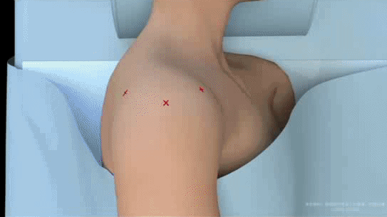 ①切口与探查:在肩部周围制作2-3个5毫米的小切口,通过关节镜,观察观察肩袖肌腱区域。