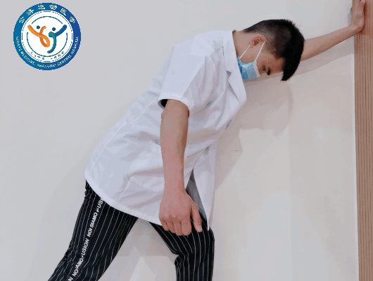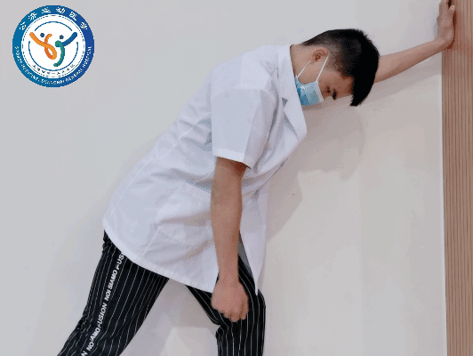 动作要领:人侧对墙壁患站立,将手掌放到墙面上,屈肘,利用手指缓慢向上爬行,直到感到轻微的疼痛为止。随着手爬升的高度增加,向墙面方向移动脚步,以更加贴近。训练频率:每次坚持5秒,10次一组,每日3组。