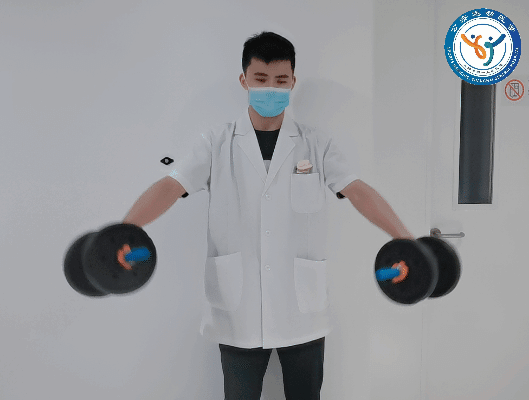借助哑铃或矿泉水,缓慢向前平举,维持3-5秒,再缓慢放下。②外展
