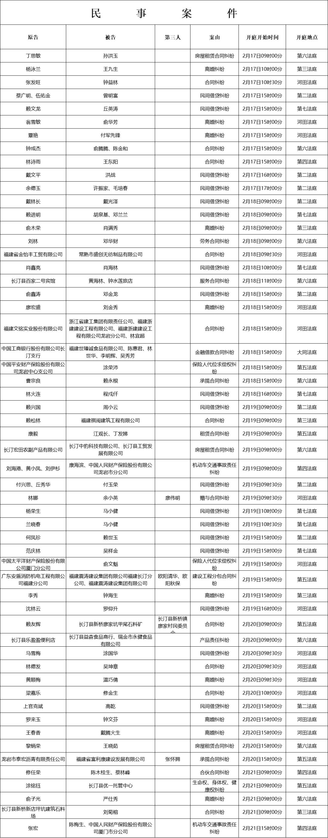 开庭公告 | 长汀法院2025年2月17日-2025年2月21日开庭公告(内附庭审直播观看指南)