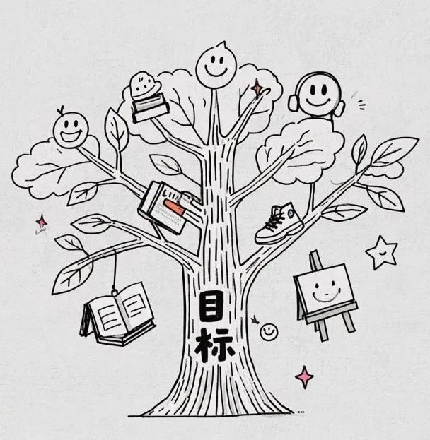 2.绘心——绘制“成长愿景树”用思维导图规划新学期:主干写下核心目标(如提升数学思维),分枝延伸具体行动(如每日3道拓展题),叶片标注期待收获的小确幸(如解出难题的成就感)。运用可视化的目标管理能增强我们的掌控感。