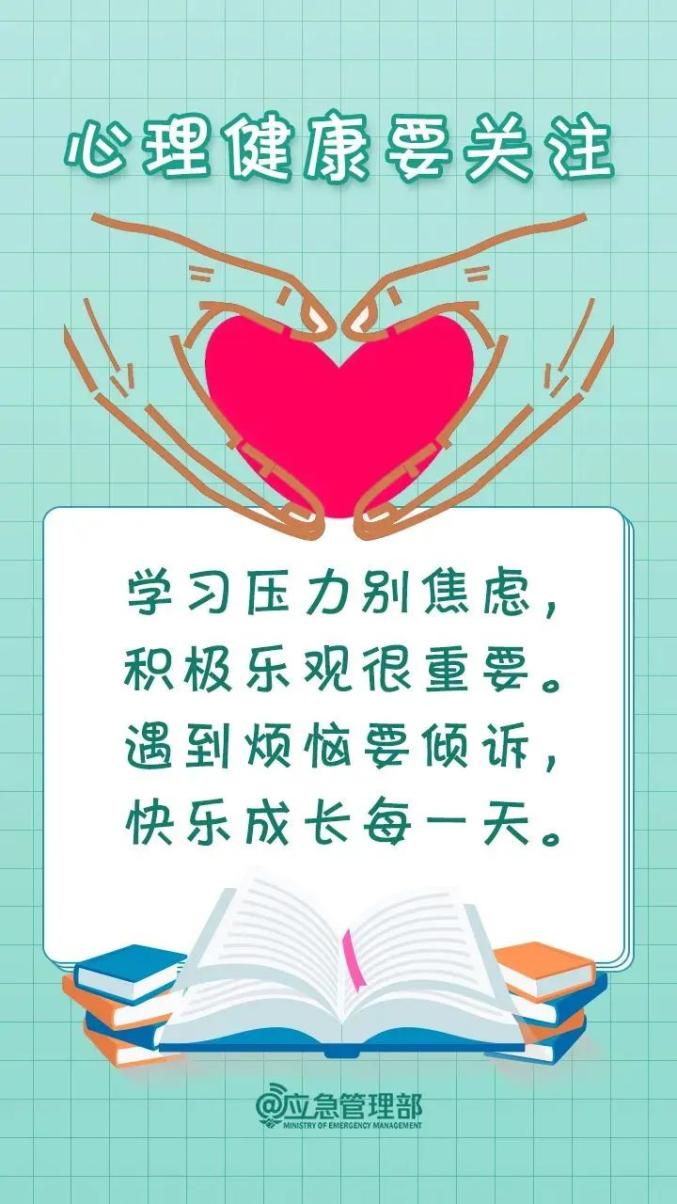 4.规律作息,科学用脑。开学前请提前调整生物钟,每天睡眠时长小学生建议至少10小时,初中生9小时,高中生8小时。