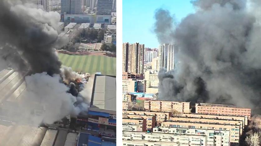 2月7日下午,郑州市二七区某鞋城门面房起火,现场浓烟滚滚。着火物质为商铺内的鞋、纸箱等,火情未造成人员伤亡。
