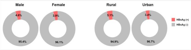 图4. HBsAg流行率的性别与城乡差异(2006–2021)HBV“零传播”