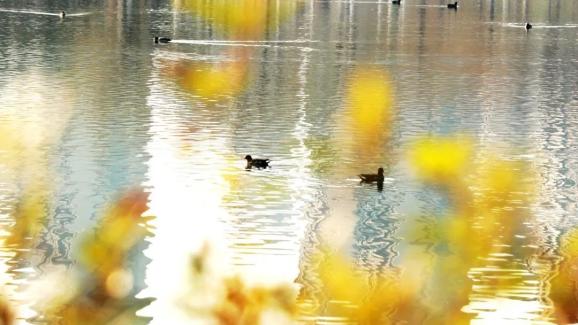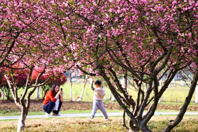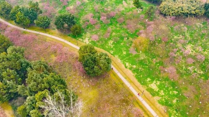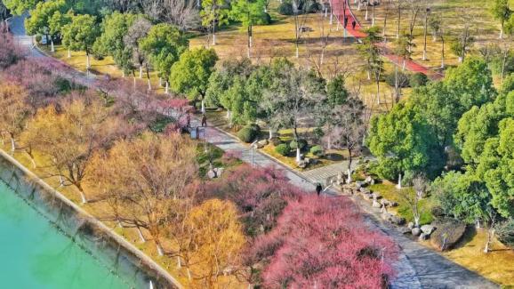 春水初生,春林初盛沿天鹅湖公园小道而行,梅林忽现