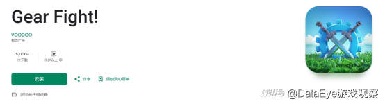 近日,DataEye研究院观察到一款名为《Gear Fight》的产品,其Google Play 详情页所显示的发行商更改为Voodoo。