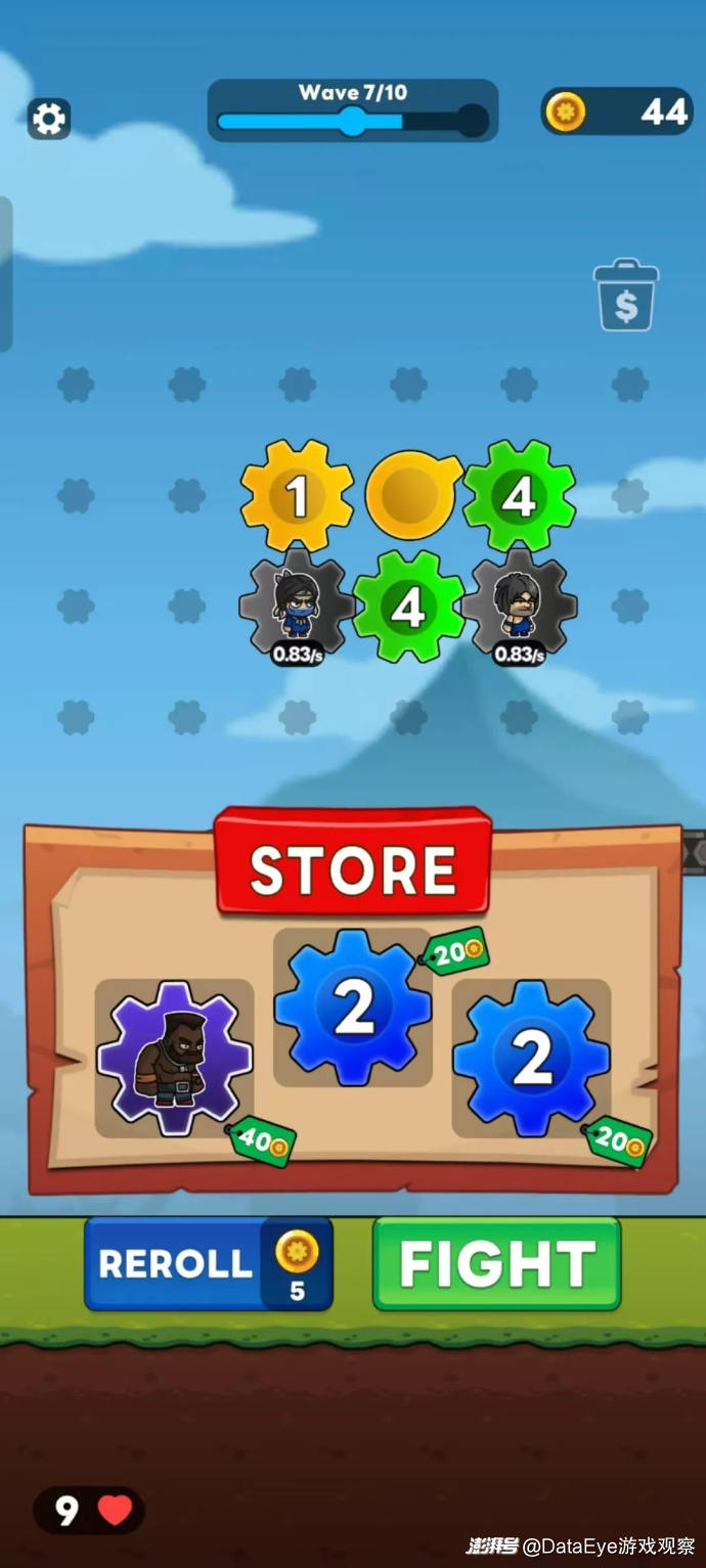 《Gear Fight》的合成玩法以及利用齿轮传动提升效率的题材相对新颖,与目前市场上的玩法存在一定的差异化。可是该产品目前的市场表现显示,整体下载量并不突出。而且该游戏的商业模式为IAA广告变现。