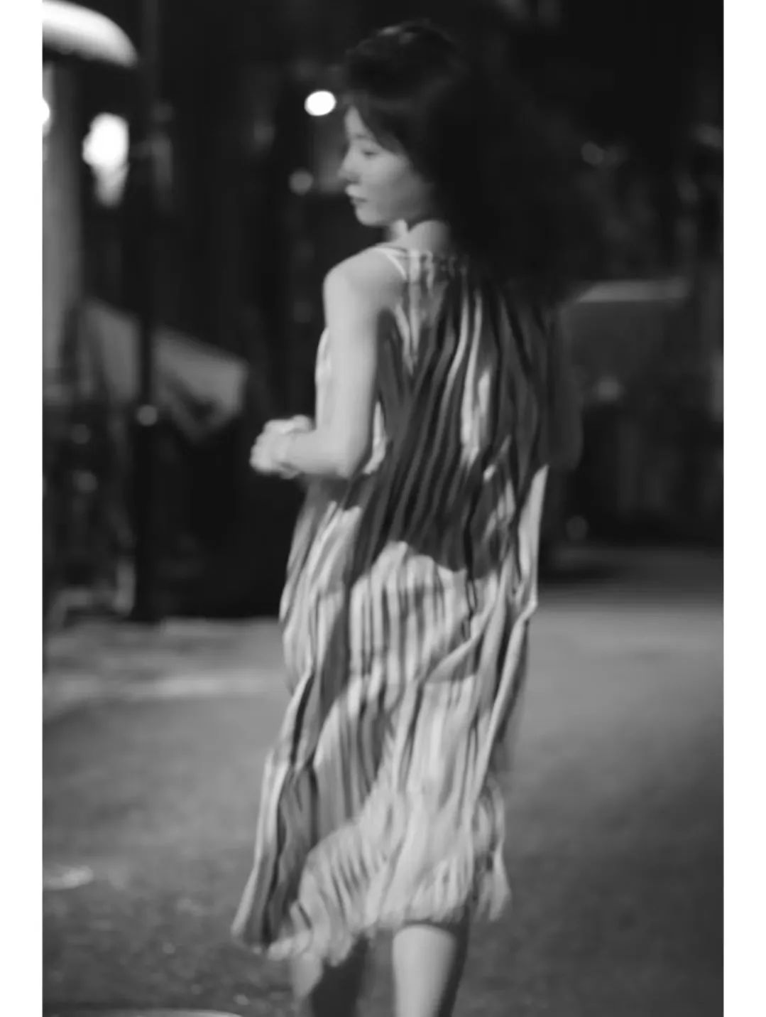 回看照片时,郑三喜最喜欢自己拍下的一张黑白照。相片里,星可正向前奔跑,裙摆飞扬,她的面容并不清晰,远处的灯光同样是虚影。“我觉得这张蛮贴合主题的,有种跟这个世界‘赛优拉拉’(日语“再见”)的感觉。”她说。星可同样钟爱这张照片,看到这张照片,她仿佛在从他人的视角审视自己,明白自己是这样一个生命状态。