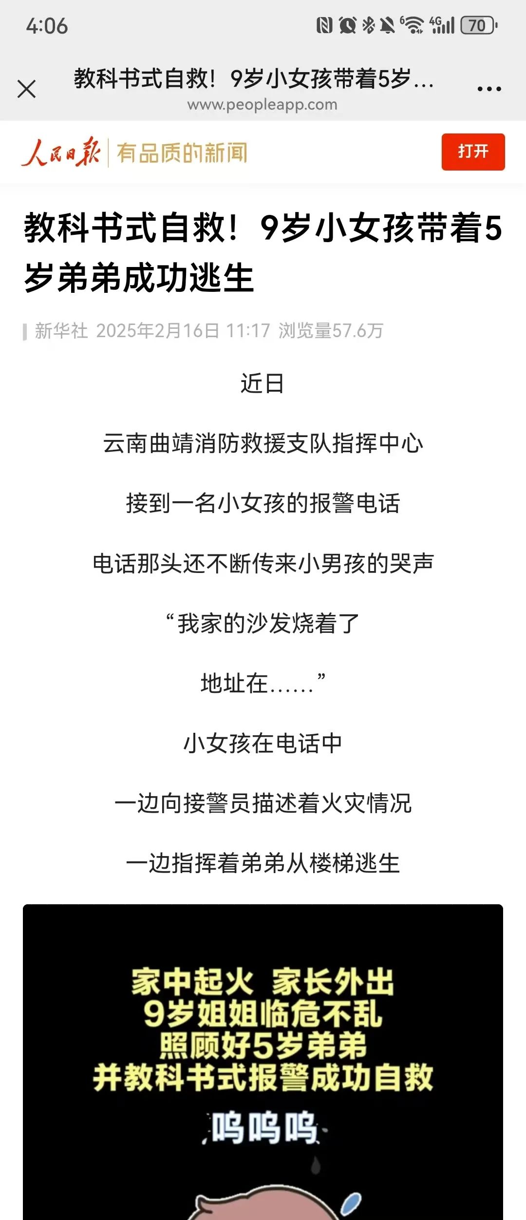 央媒看云消 | 人民日报、新华社等集中报道曲靖9岁女孩教科书式自救事迹