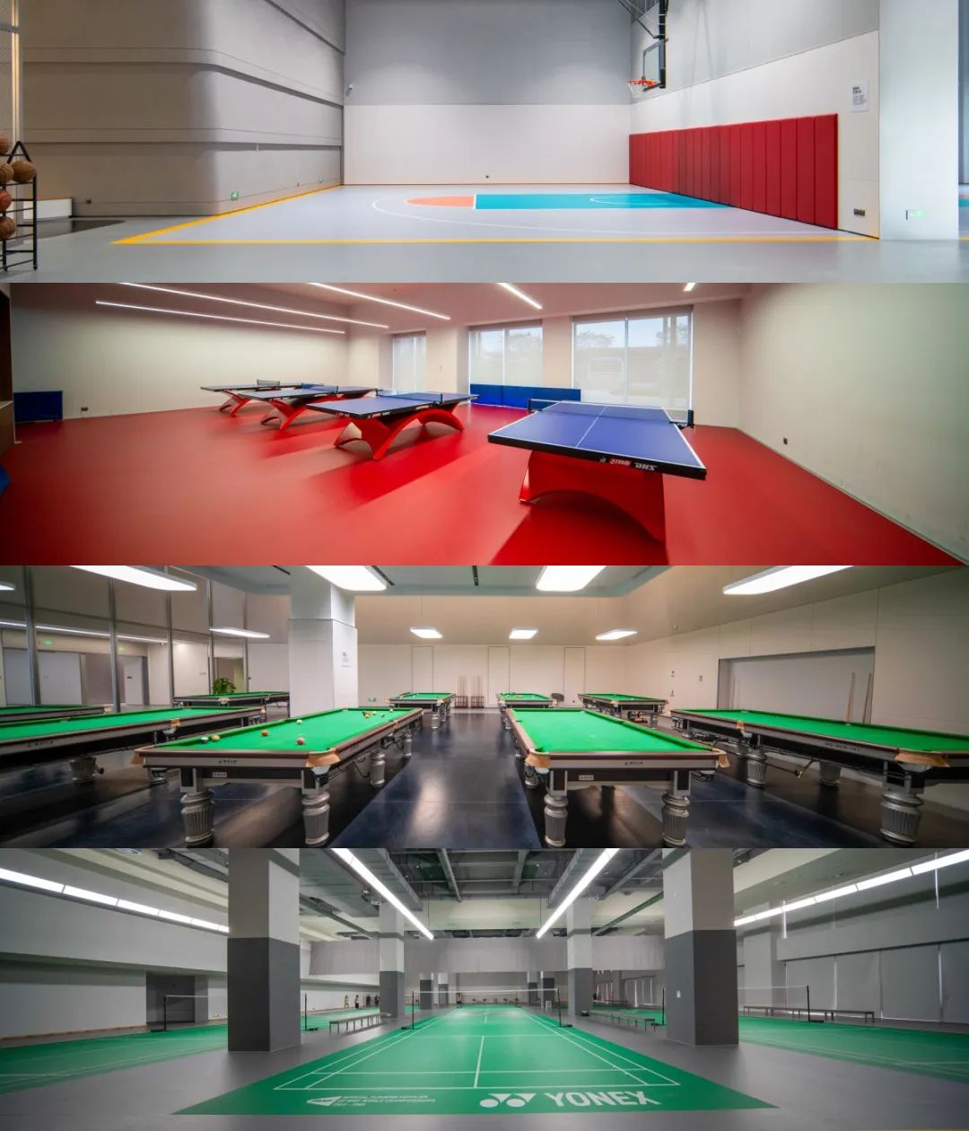 篮球、乒乓球、桌球、羽毛球等设施按高标准建设(图源:欧迪鹏/影像莞)在滨海湾OPPO园区,目前已启用6000㎡的室内运动场,包括健身房和室内球场等,更有13000㎡室外球场,篮球场、网球场等户外设施齐备。