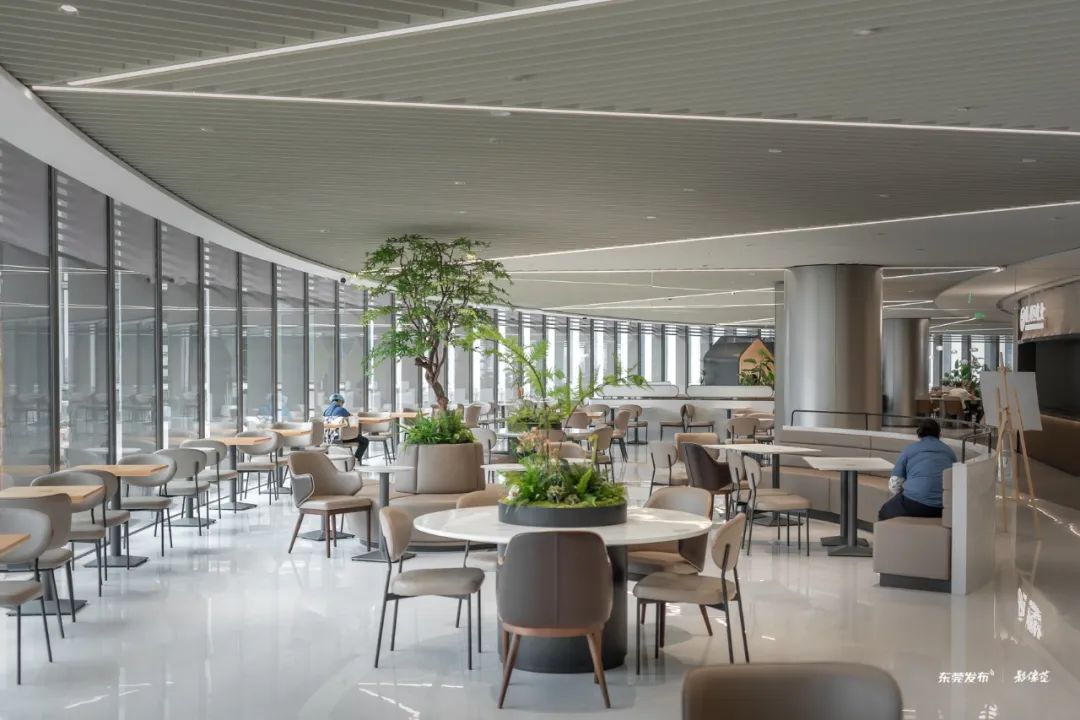 6层楼圆形餐厅(图源:欧迪鹏/影像莞)独栋的6层楼圆形餐厅(目前暂时开放1-3楼)也是园区内的亮点所在。每当用餐时间,餐厅内部就挤满了前来用膳的员工。菜品口味选择多多,价格也比外面更实惠,员工们也更愿意在餐厅就餐。