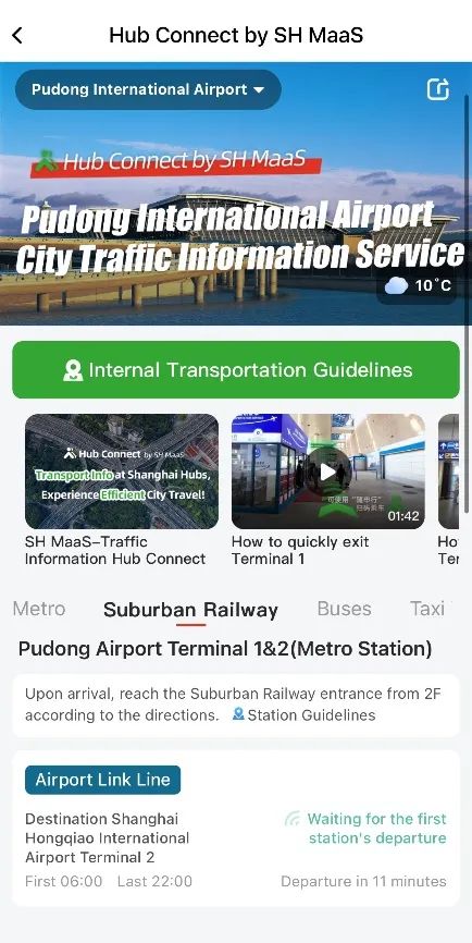 外籍旅客抵达上海机场及火车站,想要快速搭乘各类交通工具,国际旅客可以进入“随申行”APP英文版(SH MaaS)“枢纽通-上海交通信息服务专区”查看。
