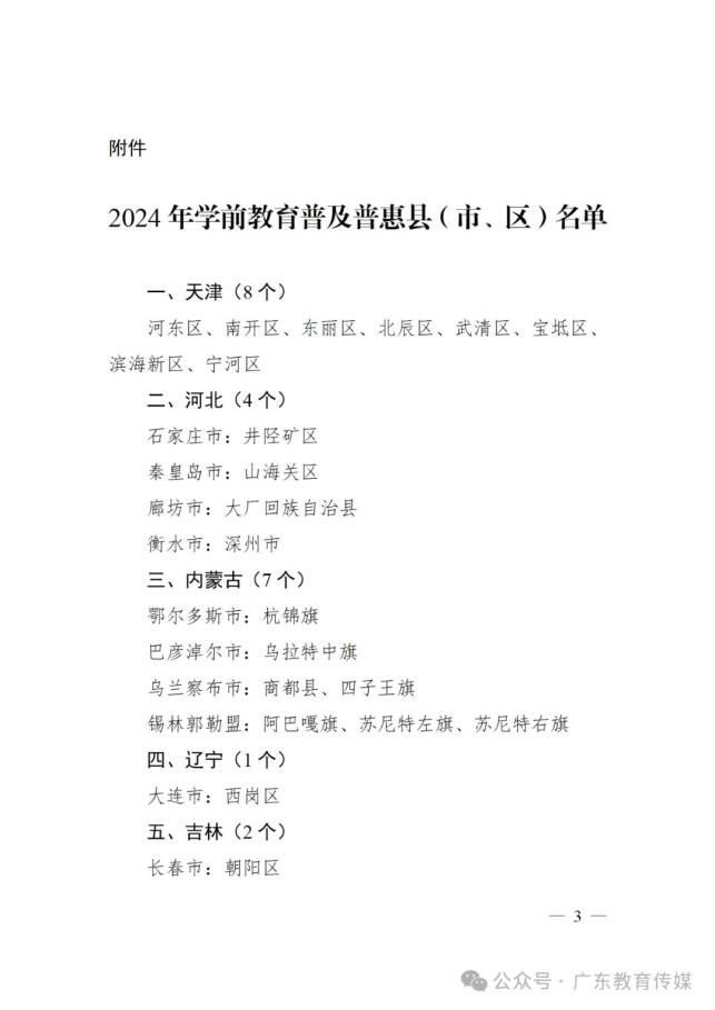 2024年学前教育普及普惠县(市、区)名单