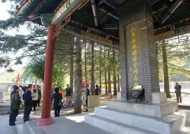 前导区的主要建筑物有牌楼、将军塑像和正气亭。中心区的主要建筑物有纪念碑、护碑亭、常青树、纪念馆和纪念塔。登上最高点雄风亭,以牌楼、塑像、正气亭、石阶、拱桥、纪念碑、纪念塔为轴线;曲桥两侧的碧水亭、丹心亭相对称;纪念馆和广场为主体;以小河、大山、苍松、翠柏为衬托。来到这里参谒旅游,都会被宏伟壮观的建筑群落和幽雅肃穆的自然景色所吸引,既受到爱国主义教育,又观赏到矿泉城美好的自然风光。非常适合带孩子来参观、学习。