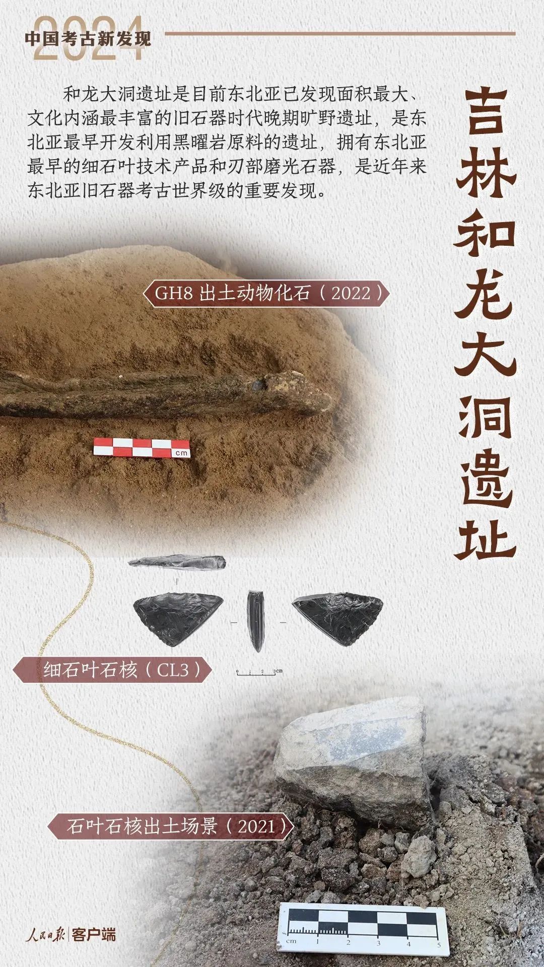 2月19日,由中国社会科学院主办、中国社会科学院考古研究所承办的“2024年中国考古新发现”评选结果在北京揭晓。吉林和龙市大洞旧石器时代遗址、浙江仙居县下汤新石器时代遗址、甘肃临洮县寺洼遗址马家窑文化聚落、陕西宝鸡市周原遗址、安徽淮南市武王墩一号墓、江西景德镇市元明清制瓷业遗址群6个项目入选。大洞旧石器时代遗址:
