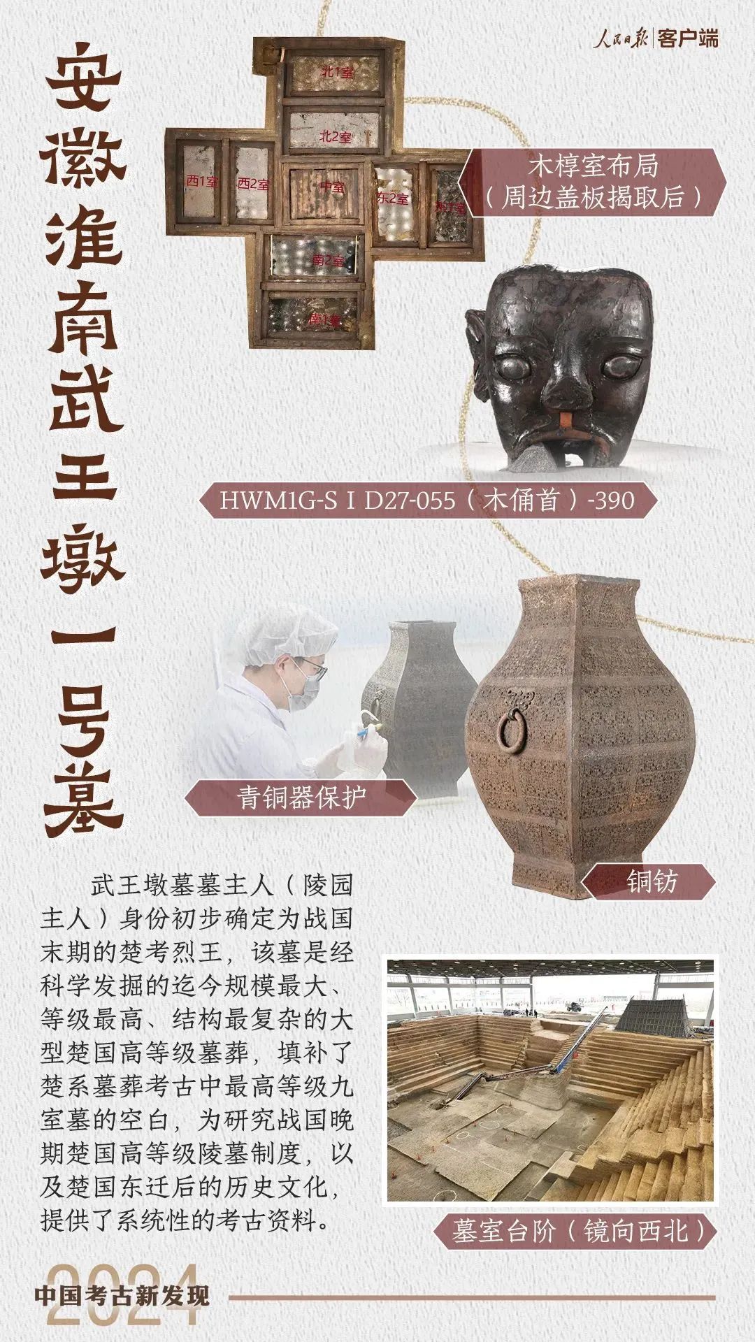 2月19日,由中国社会科学院公布了六项“2024年中国考古新发现”。分别是:吉林和龙市大洞遗址、浙江仙居县下汤遗址、甘肃临洮县寺洼遗址马家窑文化聚落、陕西宝鸡市周原遗址、安徽淮南市武王墩一号墓、江西景德镇市元明清制瓷业遗址群。