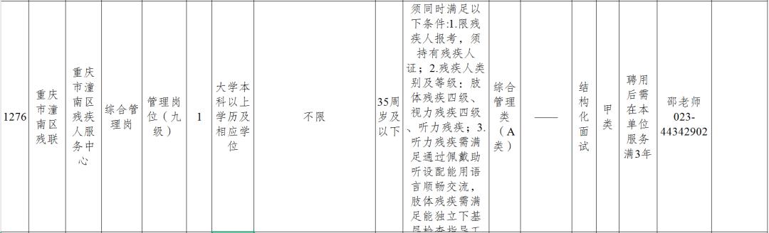 综合管理岗(残疾人专岗)招聘单位:重庆市潼南区残疾人服务中心