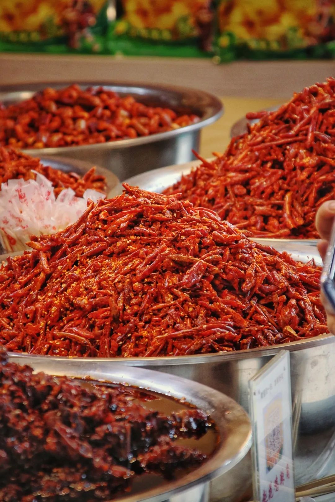和辣子鸡不同,鸡辣角主要吃辣椒,鸡肉相反变成了“配角”。鸡丁鲜辣诱人,嫩辣鲜香,既可单独成菜,又是辣鸡粉面、凉拌米豆腐的必备佐料,还可当辣鸡火锅的底料哦。