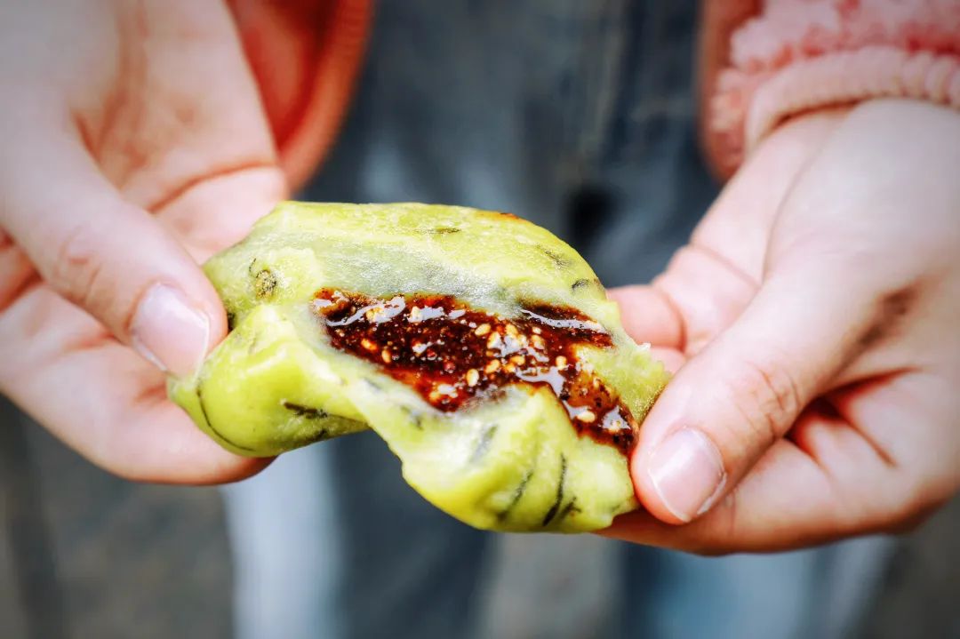 清明粑里面有丰富的内馅,甜的咸的满足不同需求!外层的糯米泛起脆皮,一口下去,满满的馅料经过加热烙制,浆汁满口!