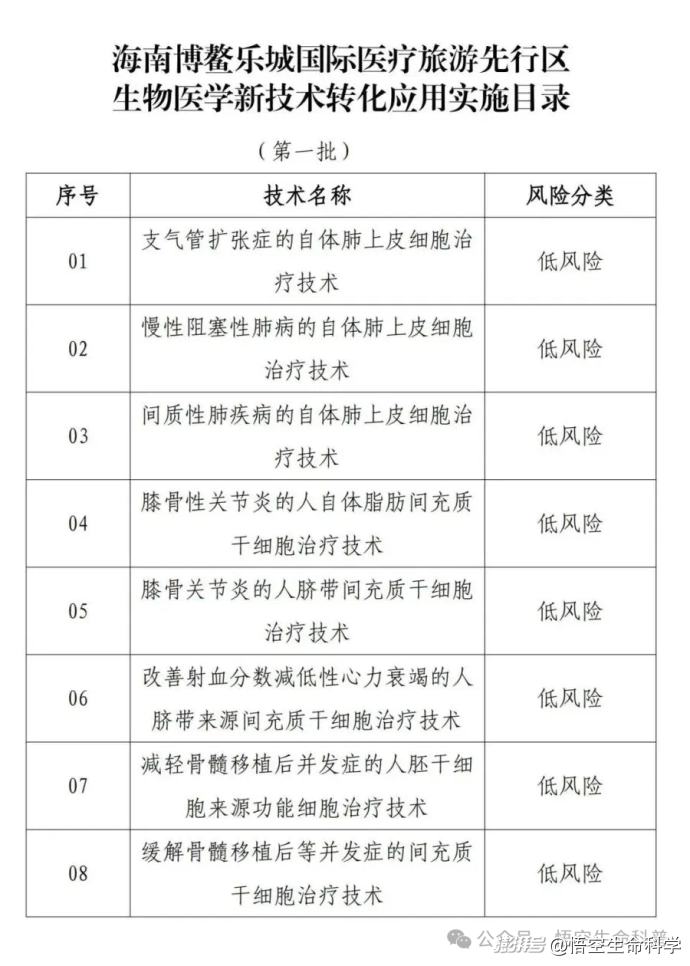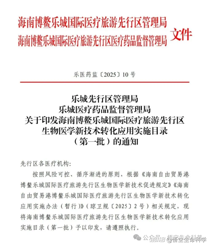 2025年2月9日,海南博鳌乐城国际医疗旅游先行区正式公布第一批生物医学新技术转化应用实施目录,共14项细胞与基因治疗技术进入应用阶段。