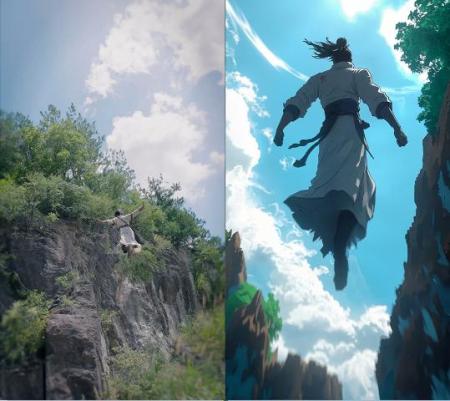 突破真人演员的生理局限:将50岁演员转化为少年漫主角,或赋予角色超越人类极限的动作表现。结合分支剧情数据库,AI可实现“用户选择-实时转绘-动态叙事”的交互模式。传统动画公司开始转型为“AI技术+艺术家”的协同模式:原画师从基础绘制转向艺术监修,人力需求减少70%但创意价值提升300%。这种变革倒逼从业人员向“AI导演”“数字艺术指导”等新角色转型。
