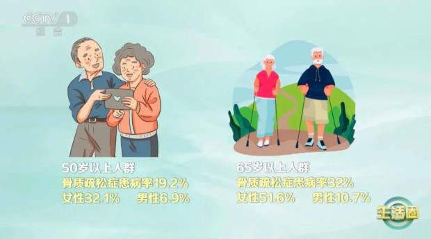 骨质疏松症患病率为19.2%,其中女性为32.1%,男性为6.9%。