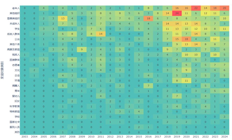 受益对象年度分布热力图