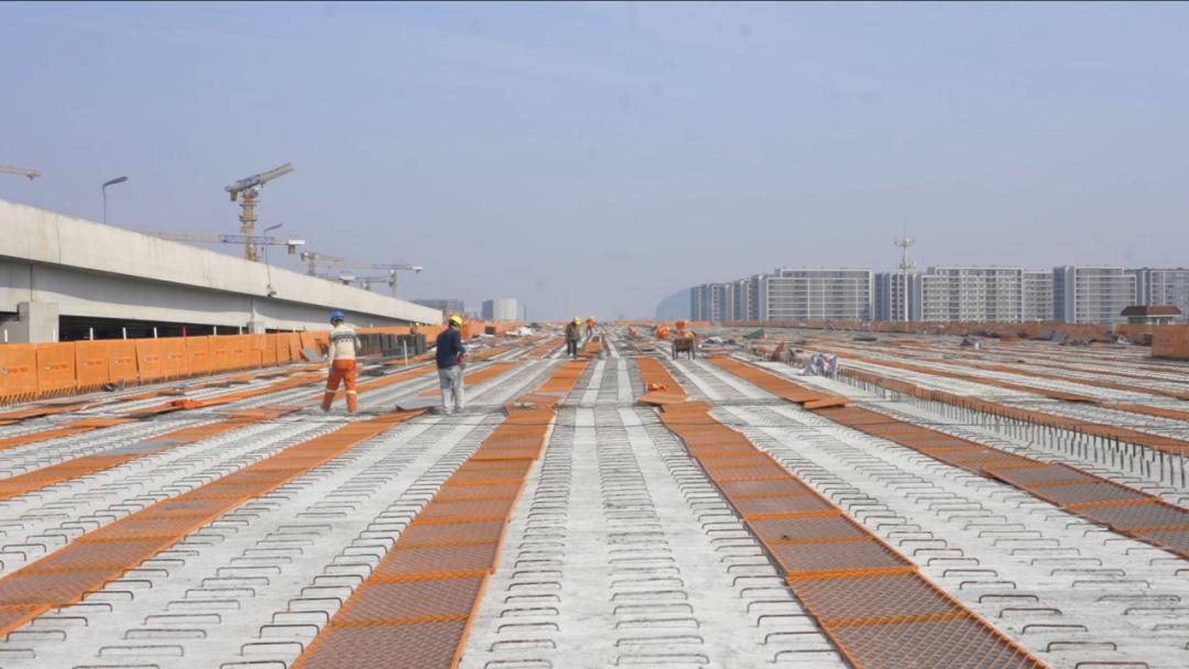 在杭州萧山国际机场三期配套东区国内货站工程项目施工现场,施工人员紧张有序地进行着综合楼地上结构施工。该项目占地239亩,总建筑面积16.7万平方米,地上建筑15.3万平方米。项目建成后,将成为国内唯一一个机场多层国内货运站,也将是我省最大的机场国内货站综合体。能实现货运保障量52万吨,极大地促进“浙江货浙江走”战略的实施,为浙江经济发展注入新活力。春节前,综合业务楼地下室提前40天完成了封顶任务,货运站A区的土方及桩基工程项目提前60天圆满完工。新年复工复产的号角吹响后,施工团队继续保持冲刺状态,确保项目建设“满弦”推进。