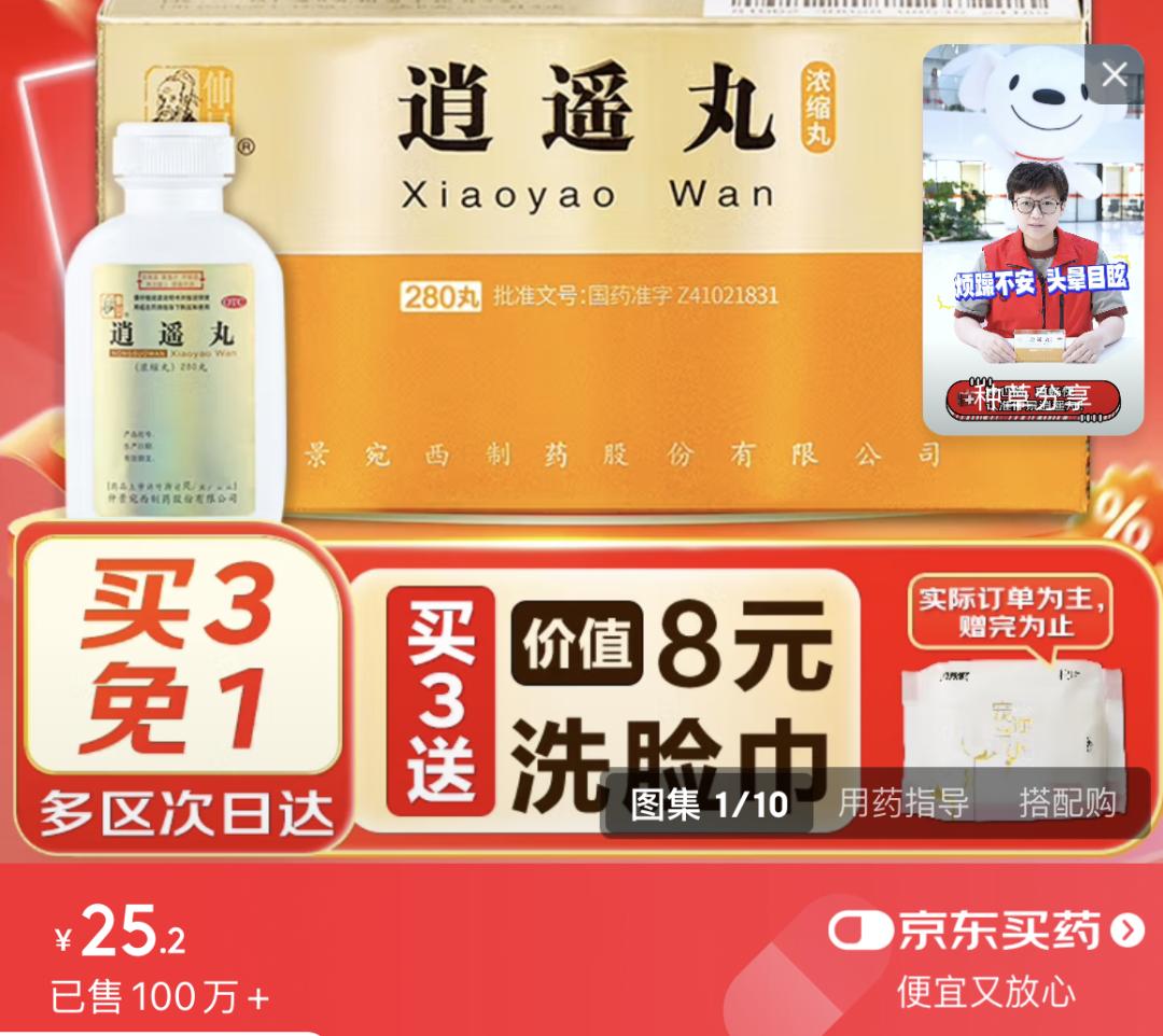 亲民的价格进一步打开了它的“全民快乐药”市场。京东上,25元一瓶的仲景逍遥丸卖出了100多万单。