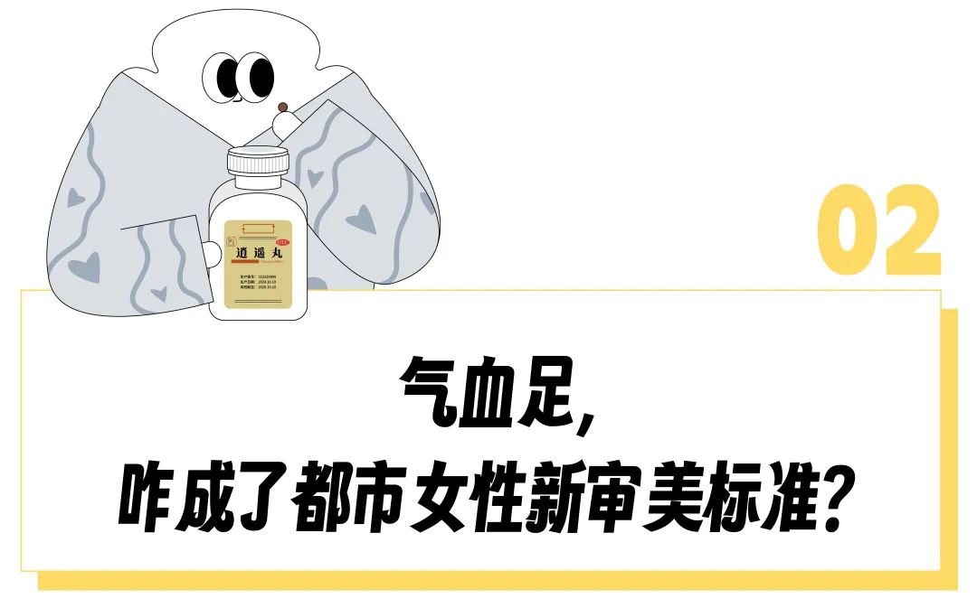 当代打工人个个化身“药罐子”,用装满三个抽屉的药瓶满足“一天基础营养摄入”。而在情绪、脑力之外,女性这两年买保健品的理由还多了一条,“气血充足”。抛弃女性白瘦幼审美后,互联网转向流行“每个月月经都准时来的气血美”:图片通常是一个面色饱满、笑容明朗但身形纤细的女孩,配文“女人缺啥不能缺气血”,告诉你5种古法饮品和8种中药食材如何助你气血充沛,结果翻到最后发现是带货红枣夹核桃。气血美的典型代表是40多岁依然活力充盈仿佛大学刚毕业、脸上见不到一丝黑眼圈的李小冉。