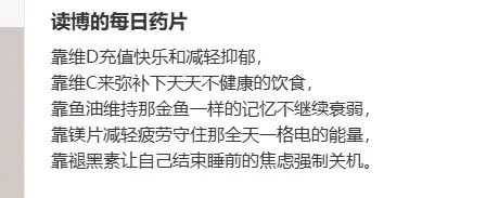 基础版药方是维生素D配镁,前者充值快乐、减轻抑郁,后者加强药效。虽然有人说多晒太阳效果一样,但“朝九晚九的生活太阳也不会等我下班。”