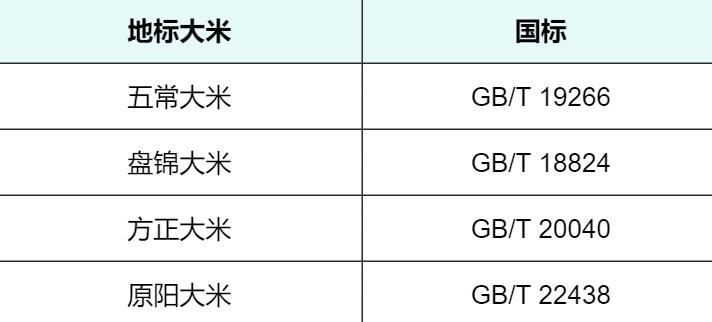 来源:GB/T 1354-2018《大米》由于我国的大米产地众多,不同产地的大米风味也有一定差异,一些地区为了凸显该地产品的独特性,会执行相关地理标志产品的国家标准,包括以下几种:
