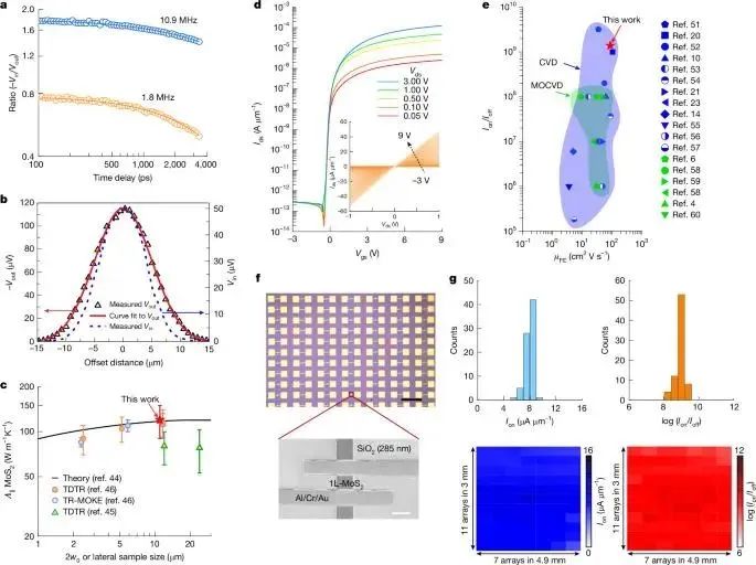 图5: hypotaxy外延生长单晶MoS2的热学和电学特性
