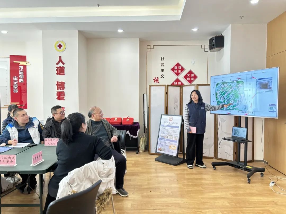 “结合小区的楼栋布局和居民的出行习惯,我们用醒目的红色箭头,标示出环形的疏散路线。”2月28日下午,在位于嘉兴路街道瑞鑫居民议事厅的主会场,来自香港丽园小区的张秀珠,正向志愿者们展示小区疏散路线图。