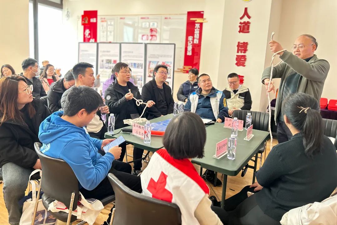 志愿者王晓君一边和伙伴交流绳结打法,一边感慨:“看十遍不如练一遍,以前就知道绳结很重要,今天通过体验式培训,终于把知识转化成了实用技能。”