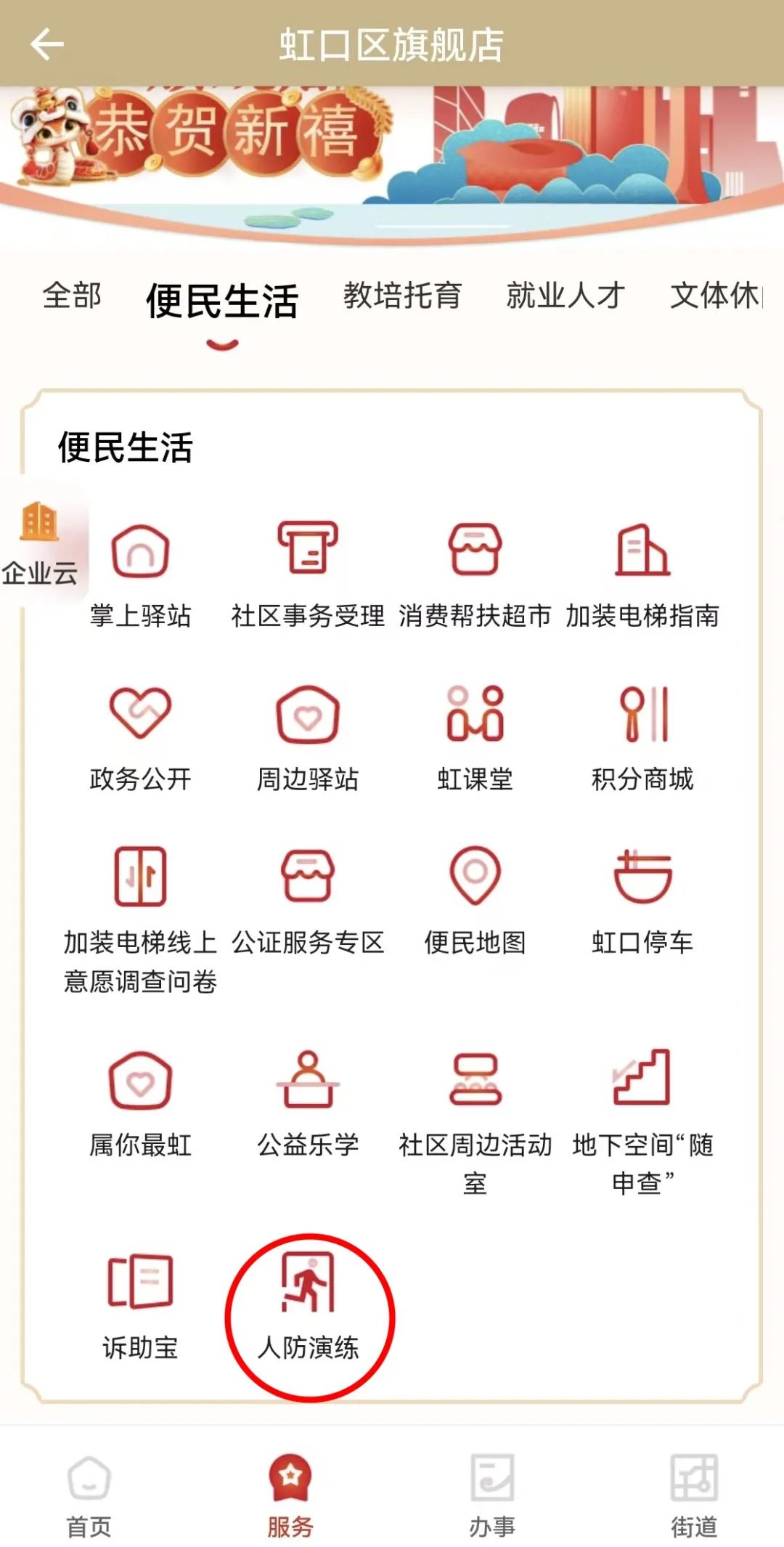 区国动办工作人员介绍,市民通过“随申办”市民云虹口旗舰店“便民生活”栏目中的“人防演练”模块,即可进行线上报名和知识学习。其中的“民防地图”功能,还可实时定位附近的人防工程和民防科普教育基地,实现“15分钟人防应急圈”精准导航。