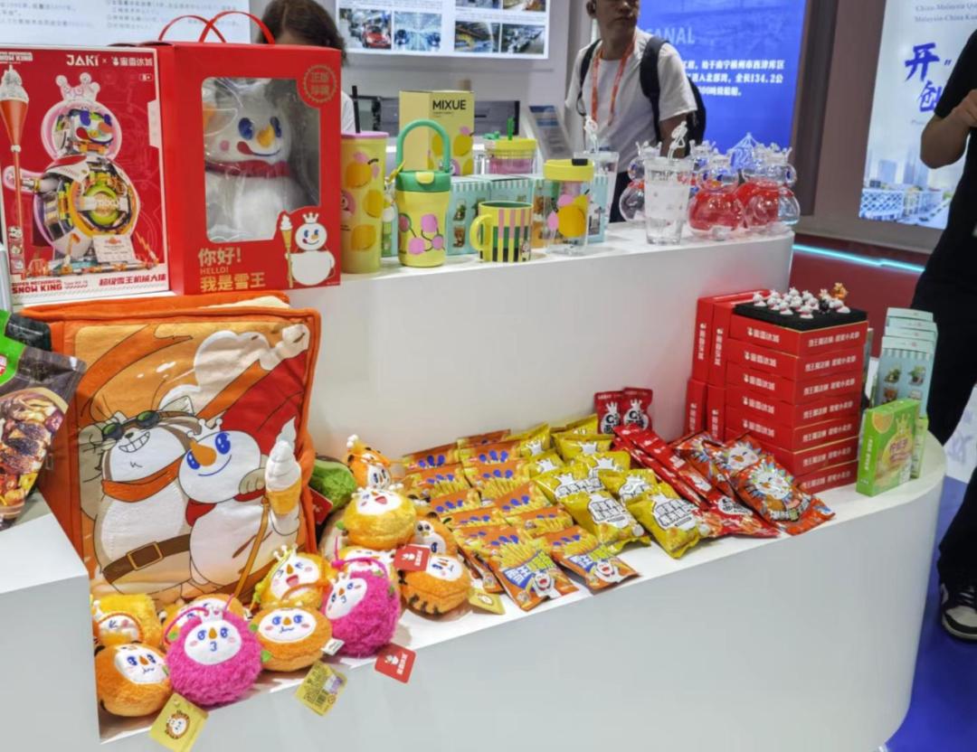 此外,蜜雪冰城还成立了动漫公司,主要负责“雪王”IP的内容运营、知识产权保护、IP商业化等业务。自制的动画片《雪王驾到》已于2023年在B站开播。不断跨界文娱,开发系列周边,近2年,“雪王”频频出现在年轻人喜欢的场景中。