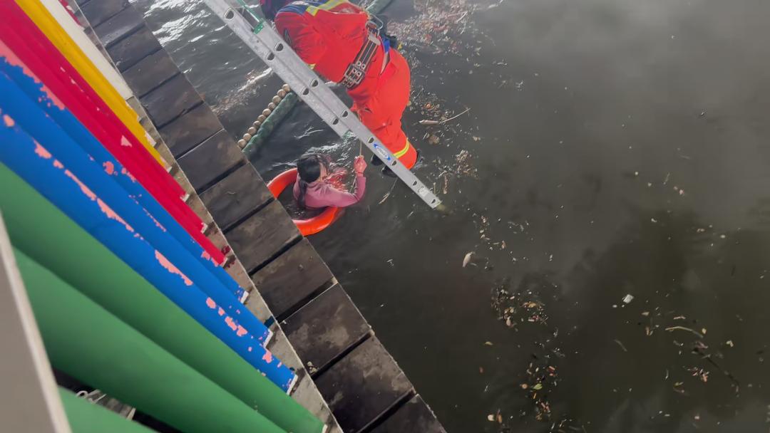 3月2日14时30分,济南天桥区,一名女子不慎落水,河水冰冷异常,水流也极为湍急,十分危险,辖区消防接警后火速前往现场将女子救出,并移交给120。