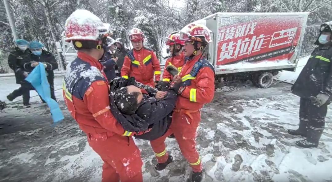 -聊城-3月2日13时33分,聊城市东昌府区246省道梁水镇,一辆箱货车因地面湿滑不慎撞上道路中央的水泥隔离桩,司机被困驾驶室,辖区消防救援站到场后仅用十几分钟就将被困人员救出。