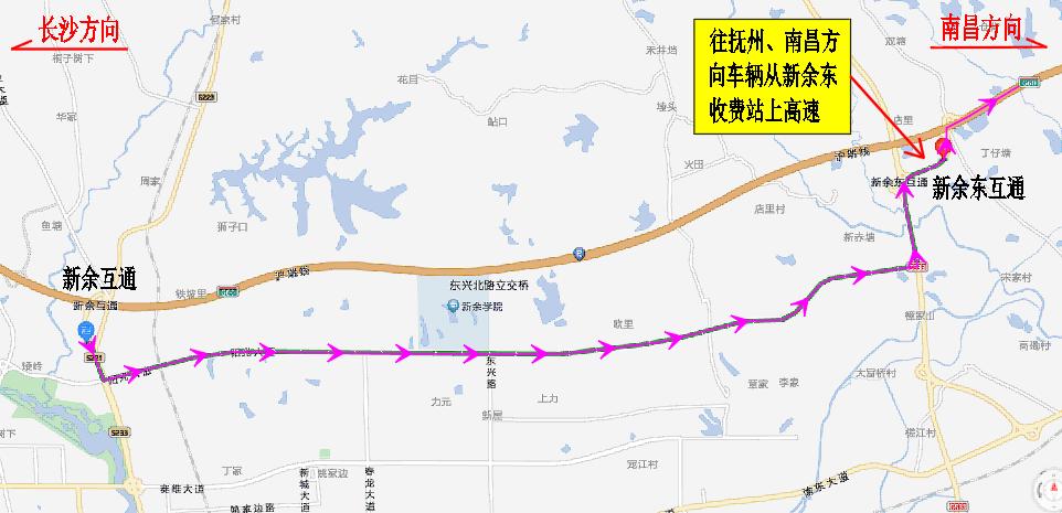 方案:车辆从新余收费站出发→阳光大道→新余东收费站上高速→G60沪昆高速南昌方向。