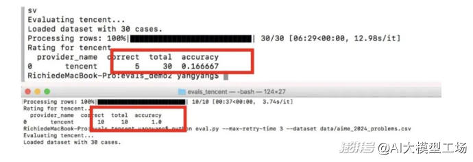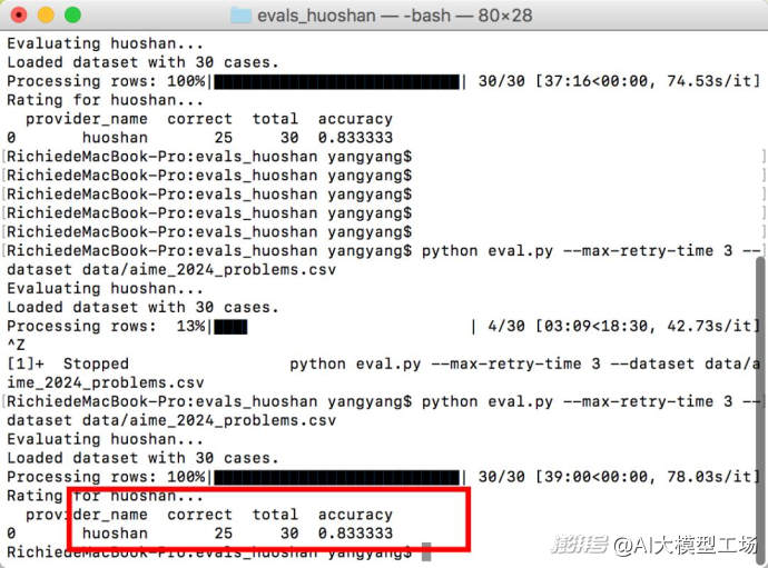 结果:AIME题库下,正确率由高到低依次是:火山引擎83.33% ;官方Deepseek 73.33% ;阿里云 71.67% ;腾讯云58.33% 。