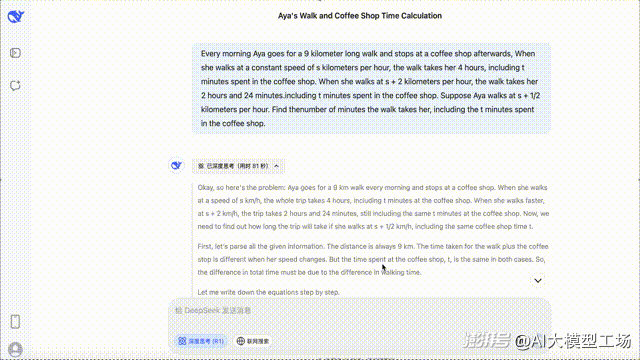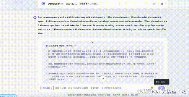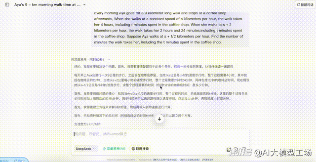 众所周知,deepseek最明显的长板即深度推理能力,通过强化学习和混合专家架构(MoE)等技术,显著提升了推理效率和性能。为此,我们选取在大模型测评领域具有权威性的测试集——AIME 数学竞赛题目。作为美国数学邀请赛,AIME 包含算术、代数、计数、几何、数论、概率等多个领域,要求参赛者在 3 小时内完成 15 道高难度填空题,且答案需精确到三位数,对模型的数学推理能力、逻辑严谨性和计算精度提出了极高要求。
